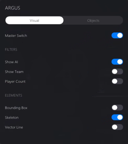 玩家骨骼、血量、距离、物资标注。多层次信息叠加渲染,构建完整态势感知。